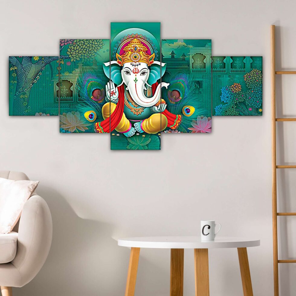 GANESH Set of Five 3D Framed Paintings for Wall Decoration – Ideal for Home, Living Room, and Bedroom (75 x 43 CM)