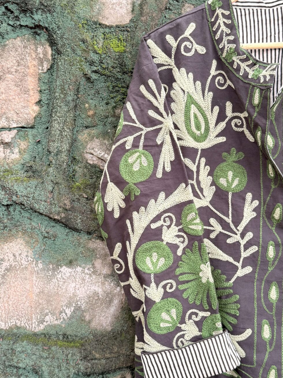 Luxurious velvet jacket featuring intricate Suzani embroidery. Perfect blend of elegance and tradition — ideal for festive and ethnic occasions.